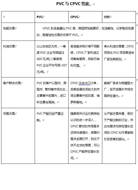 下面從氯堿廠家的角度來(lái)分析PVC與CPVC: